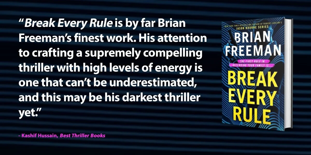 Break Every Rule is by far Brian Freeman’s finest work. His attention to crafting a supremely compelling thriller with high levels of energy is one that can’t be underestimated, and this may be his darkest thriller yet.