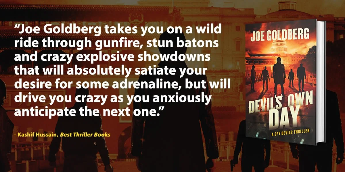 Buckle up and hold onto your hats as Joe Goldberg takes you on a wild ride through gunfire, stun batons and crazy explosive showdowns that will absolutely satiate your desire for some adrenaline, but will drive you crazy as you anxiously anticipate the next one. Devil’s Own Day is a winner!
