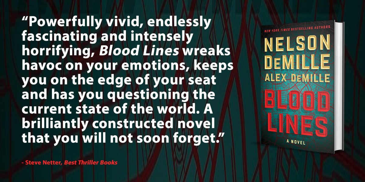 Kudos to Nelson and Alex DeMille for crafting such a compelling, entertaining and frightening story. Combining past and present narratives, they’ve delivered a highly effective and distressing cautionary tale in thriller form. And it’s excellently executed. A brilliantly constructed novel that you will not soon forget.