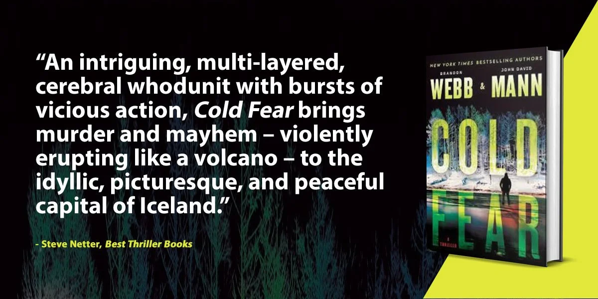 An intriguing, multi-layered, cerebral whodunit with bursts of vicious action, Cold Fear brings murder and mayhem – violently erupting like a volcano – to the idyllic, picturesque, and peaceful capital of Iceland. The writing duo of Brandon Webb and John David Mann deliver another compelling and fast-paced thriller filled with stimulating characters, captivating mysteries, riveting action and fascinating outcomes.