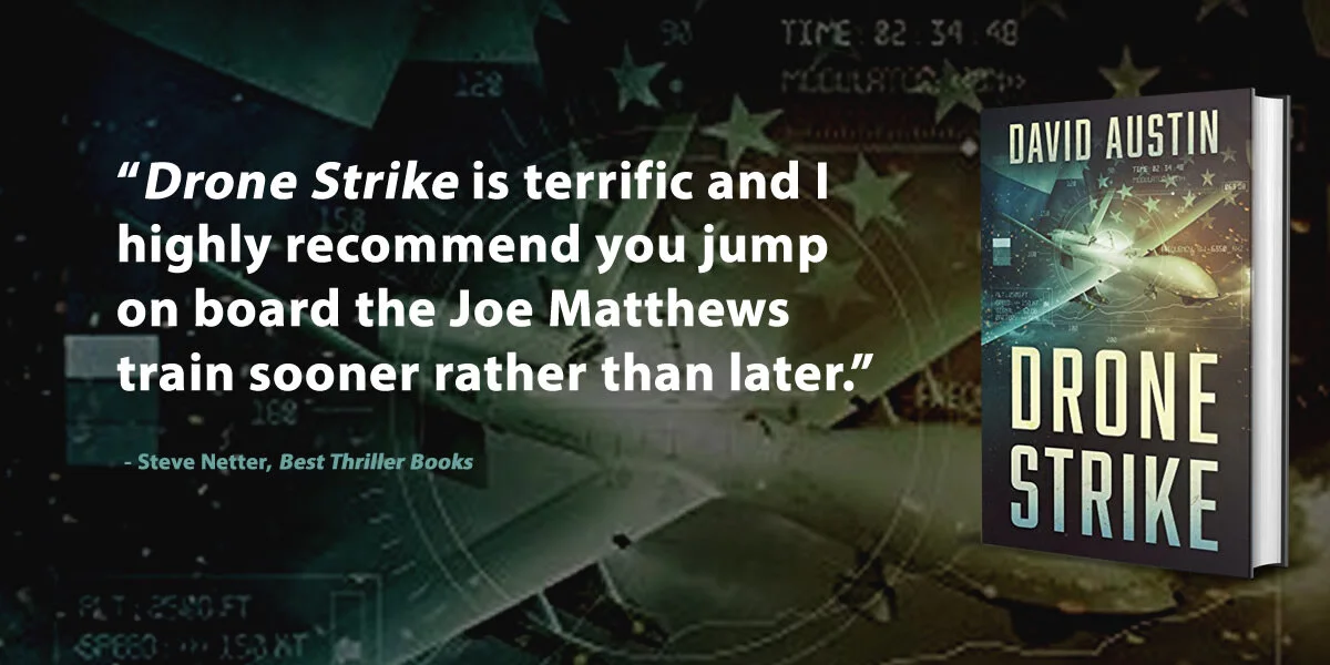 There’s a lot to like about Drone Strike. The writing style is smooth and easy to follow. The action sequences are intense, plentiful and graphic. The plot is equal parts insanity and realistic. And the character development is excellent across the board from Joe Matthews, to the bad guys to the President of the United States. And that character development is critical since at its core this book is character driven. The actions and emotions of the main and supporting characters feel authentic rather than contrived. This lends a higher degree of believability to what’s transpiring throughout the book and leads the reader to become more invested in the story.