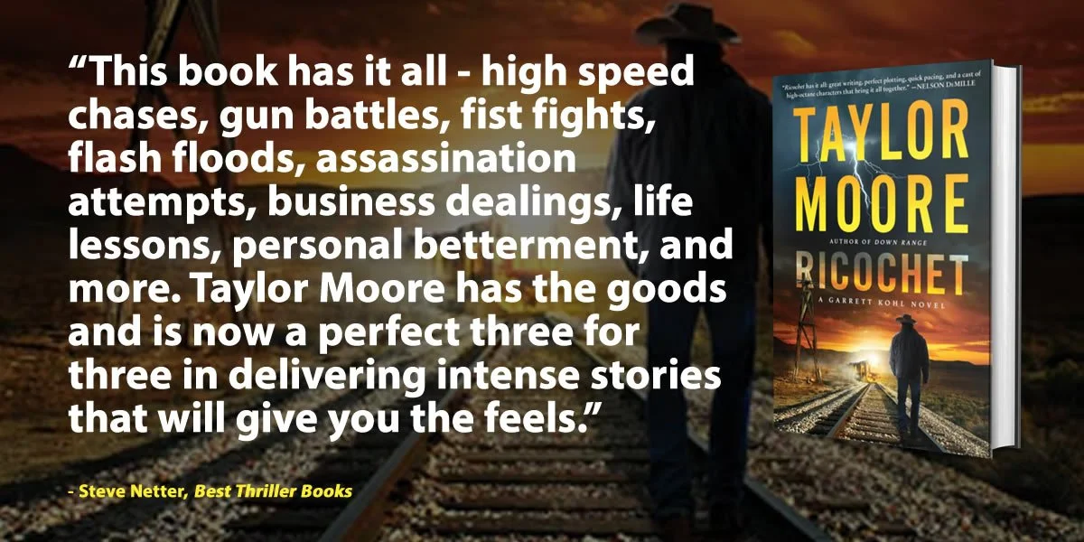 Ricochet is a fierce and fast-paced story of treachery, misdirection, redemption and family. Taylor Moore has delivered a compelling thriller that wonderfully balances dangerous action with tender moments. A great addition to this stimulating series.