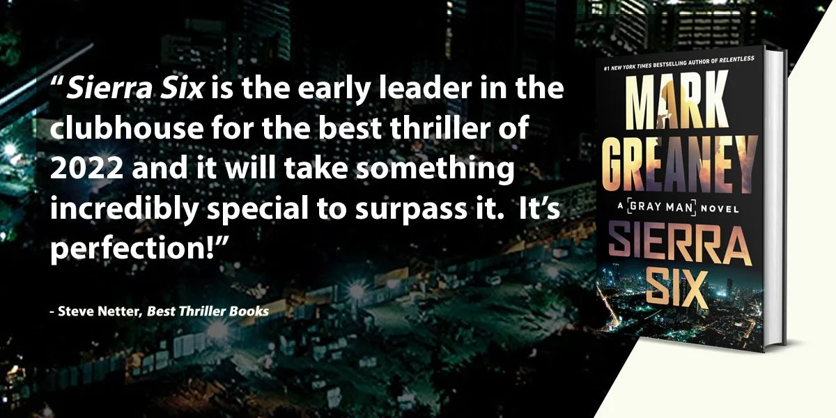 When I read a book, I’m looking for three things – entertainment, something fresh and to feel an emotional connection to the characters. This book nails all three. Sierra Six is simply stupendous! It’s so freaking unbelievably great. And while it’s been obvious for a long time that Mark Greaney is inarguably one of the best authors in the genre, Sierra Six elevates him to a higher plane of thriller existence that few authors are able to achieve in their lifetimes.