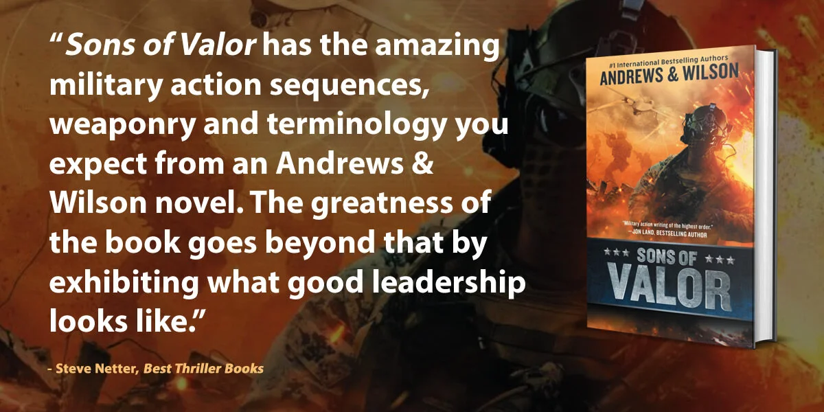 Sons of Valor has the amazing military action sequences, weaponry and terminology you expect from an Andrews & Wilson novel. But for me the greatness of the book goes beyond that by exhibiting what good leadership looks like. Chunk might be an apex predator/elite operator with a gruff exterior, but he has heart and demonstrates his ability to modulate leadership styles from coaching others, to showing tough love, to admitting when he is wrong. Chunk is not perfect, but he cares deeply for his team and strives for continuous improvement. He understands what will make the team great and takes intentional actions to bring people along, helping them to be greater than they previously thought possible. Building a great, highly functioning team takes hard work and Andrews & Wilson do a fantastic job highlighting this through Chunk vs. taking the easy path of having everything automatically and magically come together. For me, this approach makes Chunk incredibly likeable and you root for him to successfully navigate the adversity he and the team face throughout the book.