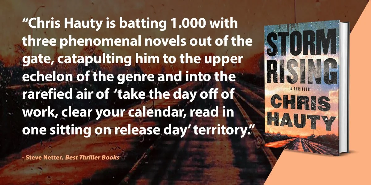 All this is to say that Storm Rising is one helluva thriller. Chris Hauty is batting 1,000 with three phenomenal novels out of the gate, catapulting him to the upper echelon of the genre and into the rarefied air of “take the day off of work, clear your calendar, read in one sitting on release day” territory. I recommend you do just that. Preorder Storm Rising today and block May 3rd to immerse yourself in the Hayley Chill experience.