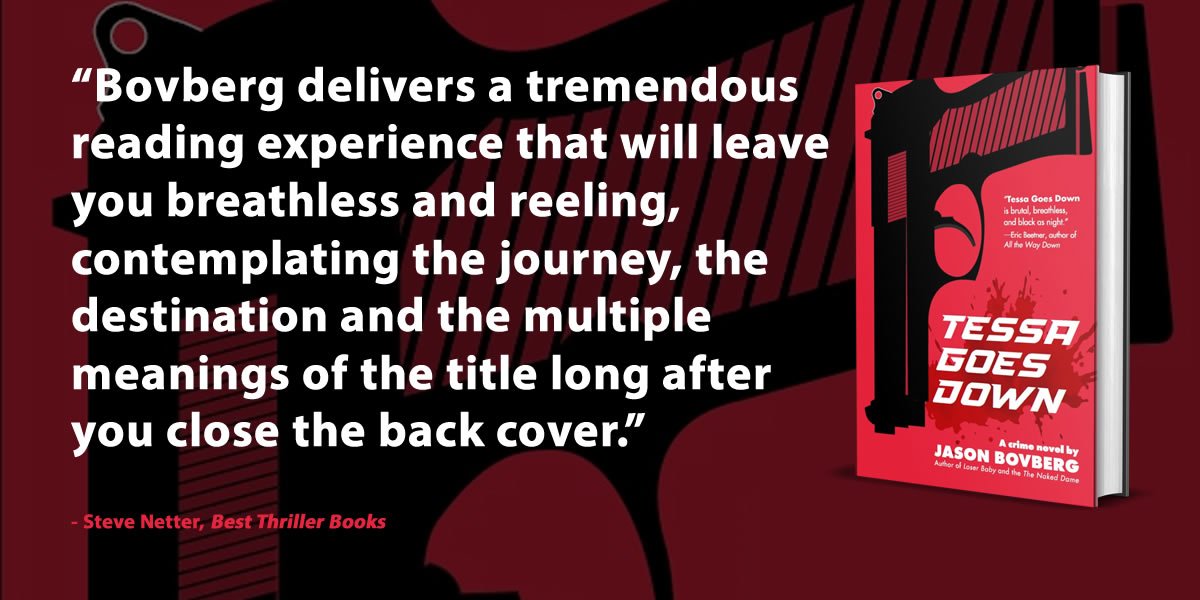 If you (1) are a fan of gritty, suspenseful, dark crime novels, (2) believe in fate and (3) are a sucker for love, then Tessa Goes Down is the perfect book for you. But even if you only check one of the three boxes, this book is still an excellent escapade worth taking. Because Jason Bovberg delivers a tremendous reading experience that will leave you breathless and reeling, contemplating the journey, the destination and the multiple meanings of the title long after you close the back cover.