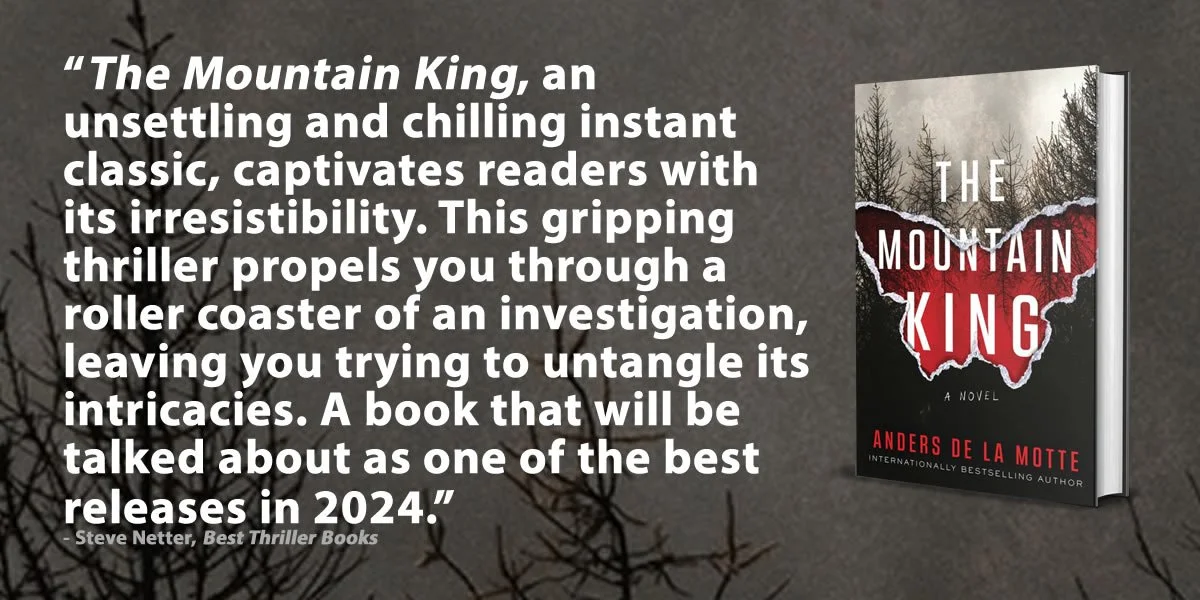 The Mountain King, an unsettling and chilling instant classic by Anders de la Motte, captivates readers with its irresistibility. This gripping thriller propels you through a roller coaster of an investigation, leaving you trying to untangle its intricacies. A book that will be talked about as one of the best releases in 2024.