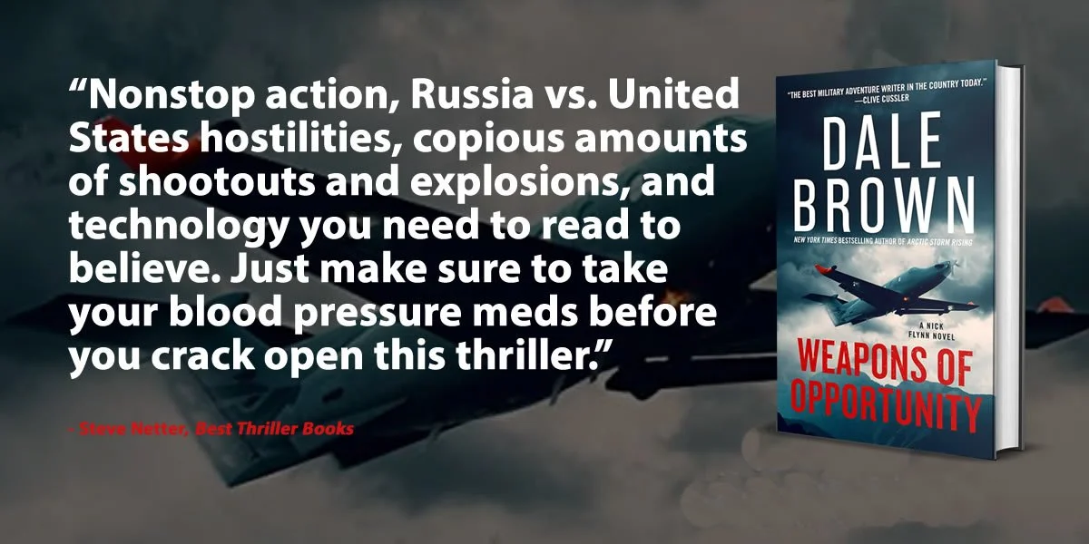 Dale Brown is known for delivering fast-paced, action-packed stories wrapped within monumental plots, and he does so once again in Weapons of Opportunity. The intensity starts off high and ascends into the stratosphere as the story progresses, elevating the reader’s blood pressure to borderline unhealthy levels. But that’s only because the fate of the entire world is at risk. And the plotting and scheming versus counterintelligence cat-and-mouse game leaves plenty of doubt as to who will emerge victorious. As a bonus the author throws in some new futuristic technology that is truly astonishing, which feels like an homage to the previous and long running McLanahan series in which innovative and revolutionary military equipment featured prominently.