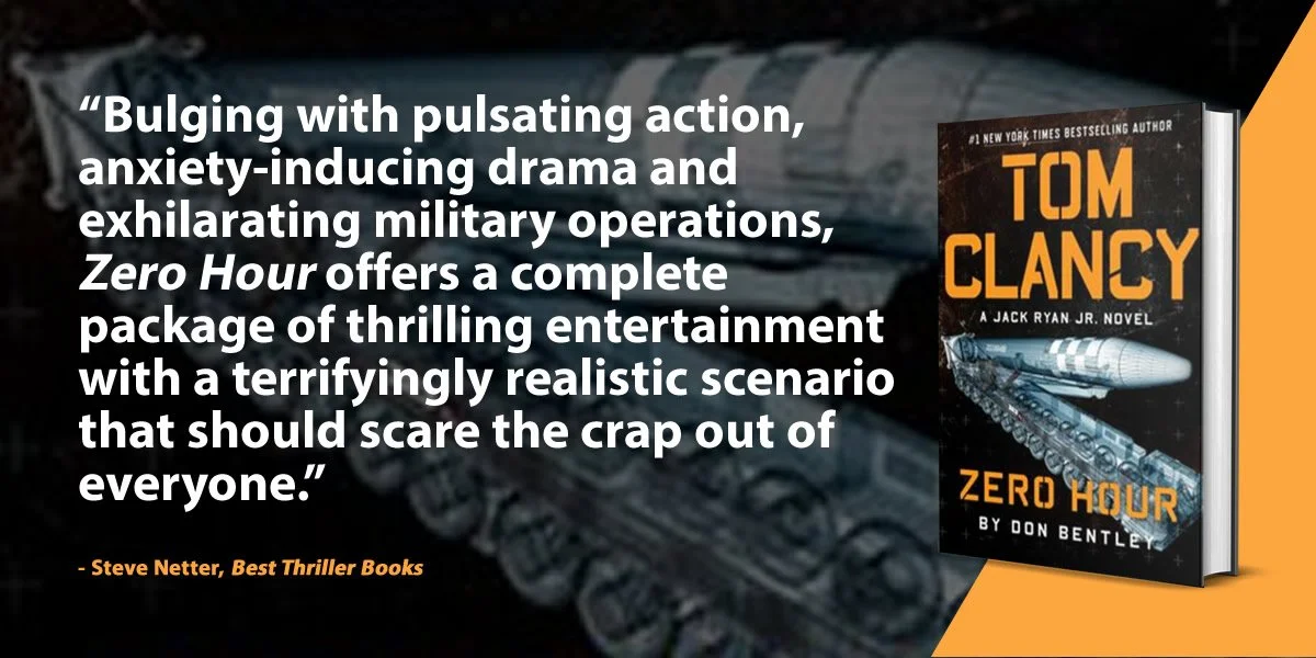 Bulging with pulsating action, anxiety-inducing drama and exhilarating military operations, Tom Clancy Zero Hour offers a complete package of thrilling entertainment with a terrifyingly realistic scenario that should scare the crap out of everyone. Don Bentley delivers another fantastic entry into the Jack Ryan, Jr. universe, keeping the Tom Clancy legacy alive and thriving with his fresh, no-holds barred, action-packed approach to the series.