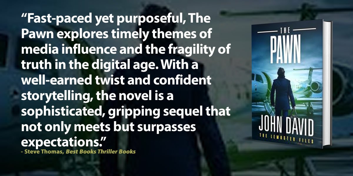 Fast-paced yet purposeful, The Pawn explores timely themes of media influence and the fragility of truth in the digital age. As Scotty’s image goes viral and public perception begins to shape reality, Pete realizes he may be manipulated by forces beyond his control—reduced to a pawn in a much larger game. With a well-earned twist and confident storytelling, the novel is a sophisticated, gripping sequel that not only meets but surpasses expectations. I highly recommend that you add The Pawn to your reading list and you add John David to your list of thriller authors.