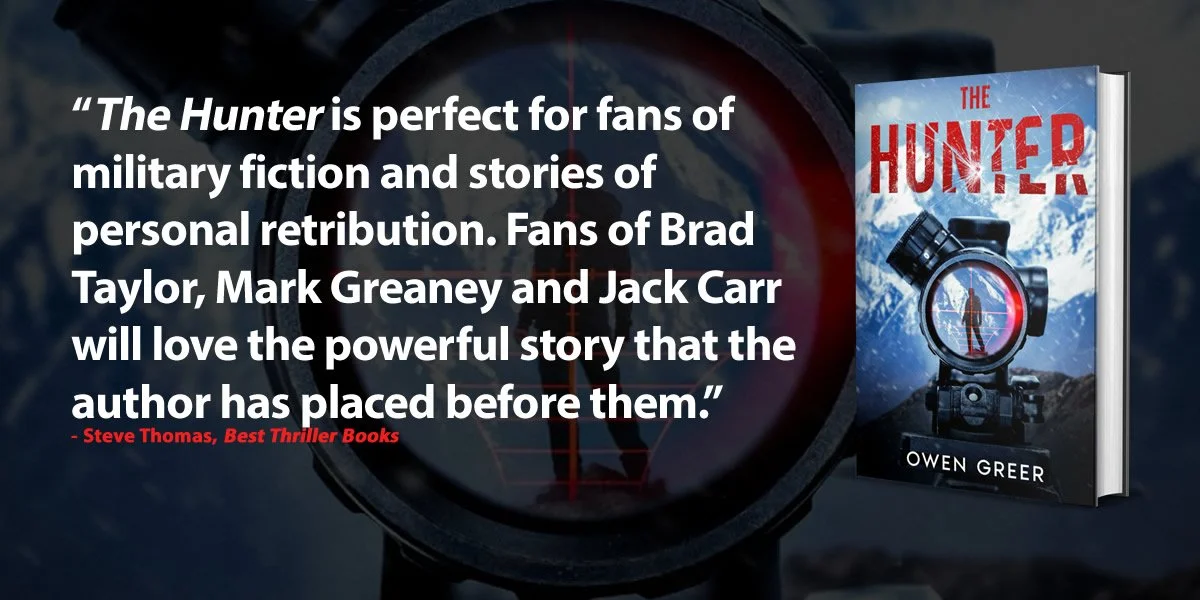 The Hunter is perfect for fans of military fiction and stories of personal retribution. Fans of Brad Taylor, Mark Greaney and Jack Carr will love the powerful story that the author has placed before them. The premise of an elite soldier operating outside the bounds of traditional warfare, facing enemies on all sides while grappling with his own soul, suggests a compelling and unyielding narrative that will keep readers hooked until the very end. I highly recommend The Hunter – it was one of my favorite reads of the year - and look forward to the next thriller Owen Greer shares with us.